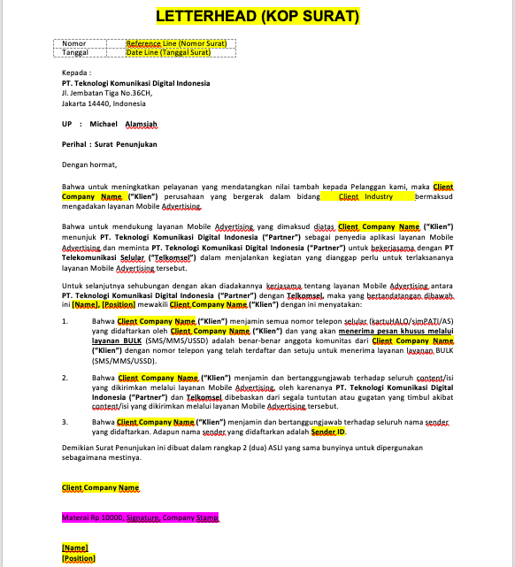Please note that the requirements and regulations in some countries for example Indonesia, sometimes documents need to be signed by the customer to ensure that the registration is properly carried out on behalf of the customer/client who has the right to use the brand name. This serves to ensure that the traffic / traffic really comes from a legitimate source and minimizes the potential for misuse of a brand’s Masking / Sender ID.
